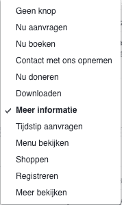 In de afbeelding hierboven zie je de mogelijkheden van de actieknop. Bedenk goed welke actie je wilt dat jouw doelgroep gaat ondernemen en stel deze actieknop in. Doe geen valse beloftes richting jouw doelgroep. Hiermee bedoel ik simpelweg dat het doel van jouw actieknop ook daadwerkelijk naar dat doel leidt.