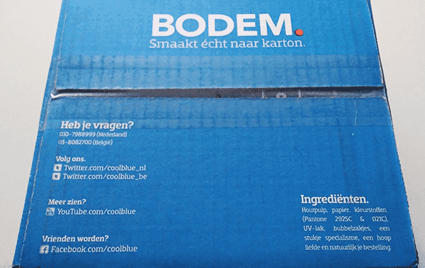 Is de onderkant van de doos saai? Nee hoor…. Hier maken ze nog even duidelijk waar je terecht kunt met eventuele vragen met daarbij de verwijzingen naar hun social media kanalen.